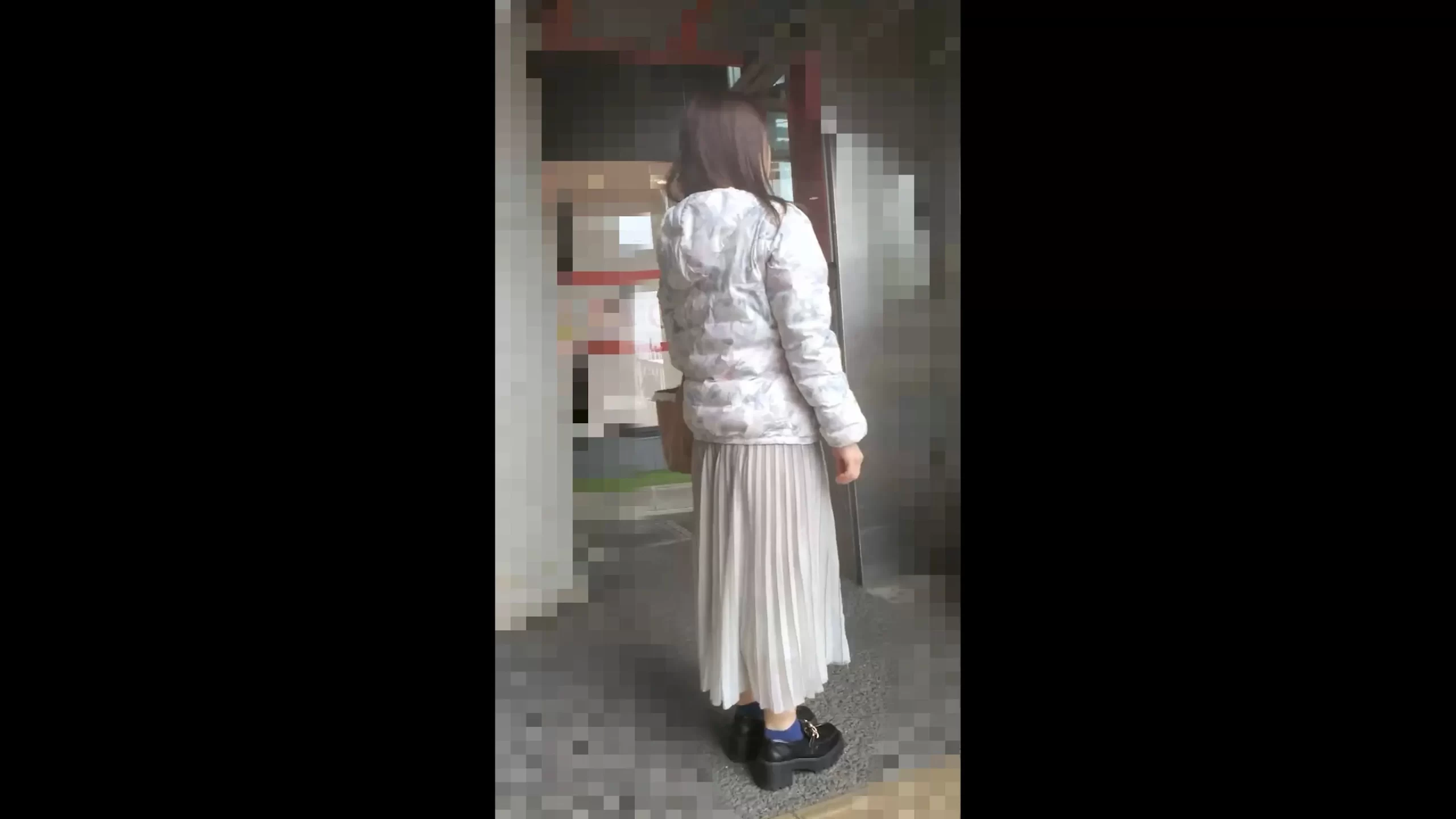 今回のターゲットは三十路過ぎくらいのお姉さん。あっけらかんとした表情をしておりますが、痴漢されていると気付いて表情が一変。なんとか逃げ道を探すもがっちりと囲まれてしまい身動きが取れない状況に。そんな中でようやく痴漢開始。パンツを脱がされてケツにチンポを擦り付けられながら射精を許してしまいます。眉間にシワを寄せながら快楽に耐える姿が印象的でした。できればそのデカパイもじっくり鑑賞したかったですね。